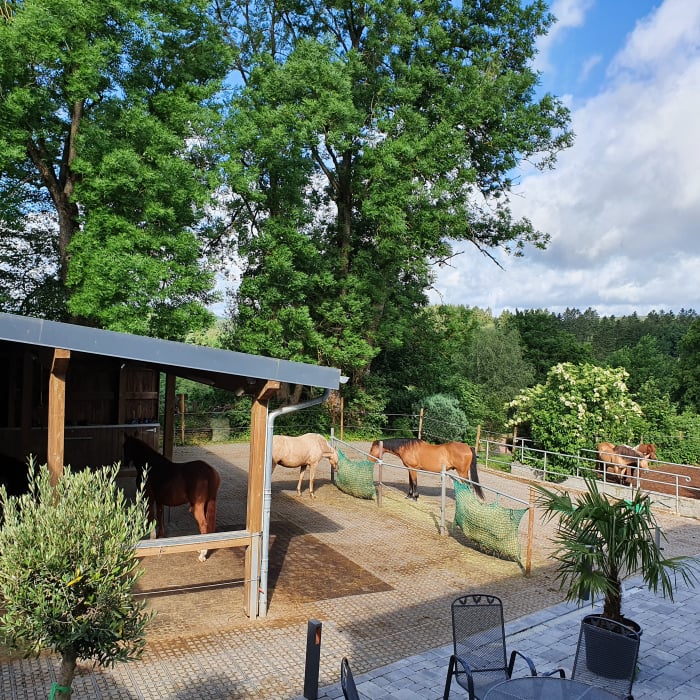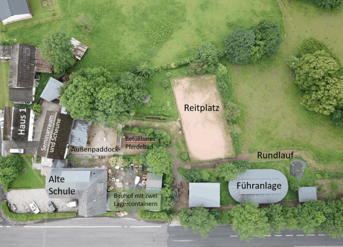 Informieren Sie sich hier über die Hofanlage, die Führanlage, den Reitplatz und den Außenpaddock.